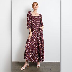 🆂🅰🅻🅴 A235 ☼ Boho Square Neck Floral Print Maxi Dress