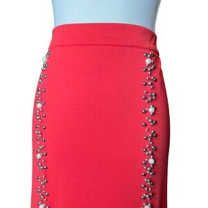 # A238 Nancy Cocktail Chic feminine Red Skirt Pearl & Stud Detail NWOT L