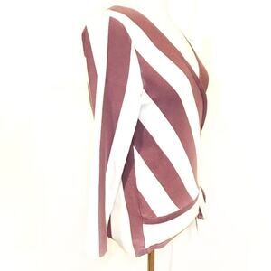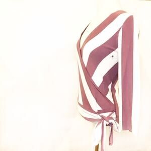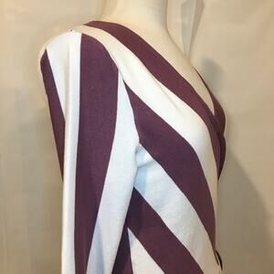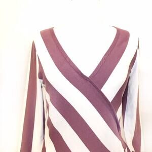 New York & Company V-Neck Wrap Blouse Purple White Striped size Small