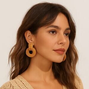 TAGS: boho raffia rattan geometric earrings lightweight statement dangle jewelry natural fiber summer festival vacation chic trendy neutral tones casual beachy stylish unique earthy handmade inspired eco resort outfit finishing touch simple classic bold versatile everyday modern minimal detail woven natural straw fashion boutique accessory feminine cute fun stylish gift ready