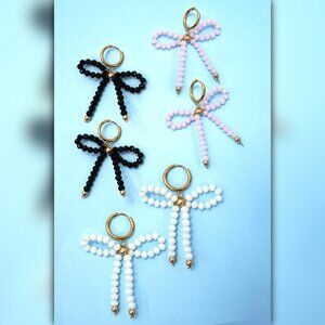 Beaded Bow Earrings – 18K Gold Stainless Steel