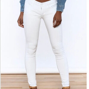 A’2nd white ankle skinny jeans. T pocket style with logo button waistband. Back pocket with white metal raised logo. Cotton/spandex blend. Size 5. Excellent condition. Nonsmoking home.