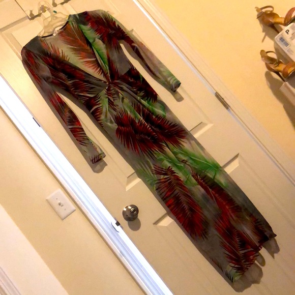 This outfit can be a cover up or dress with a deep c neck
