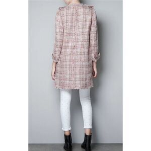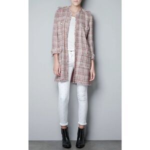 ZARA WOMAN TWEED PINK COAT BLAZER LONG GOLD BUTTONS FANTASY WOMEN's JACKET LARGE