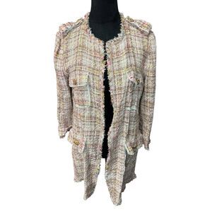 A374 ZARA WOMAN FANTASY TWEED PINK LONG GOLD BUTTONS COAT BLAZER JACKET Large