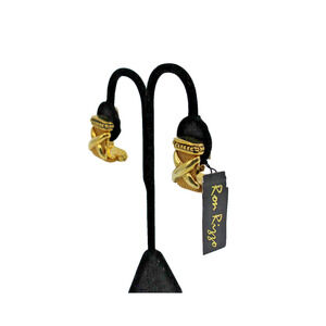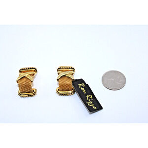 Vintage AUTHENTIC RON RIZZO Signed Goldtone Mesh X Clip On Earrings