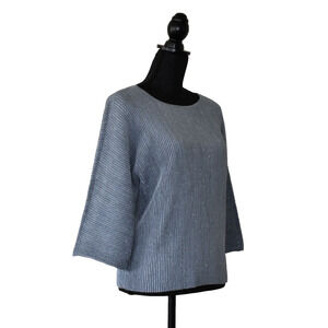 AUTHENTIC EILEEN FISHER Hemp Blend Blue Metallic Ribbed Knit Crewneck Petite Sweater Top