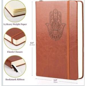 A5 Hamsa Hand Leather Journal Notebook – Lined Hardcover for Writing –...