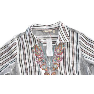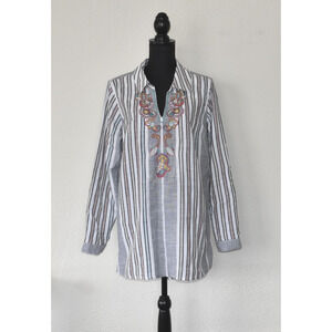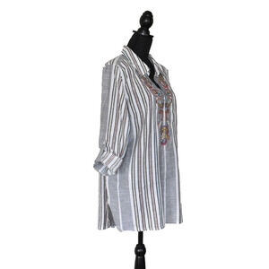 NEW AUTHENTIC SOFT SURROUNDINGS Brookhaven Striped Embroidered Cotton Blend Boho Tunic Top
