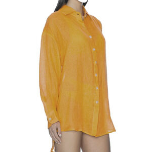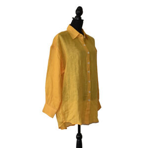 NEW AUTHENTIC VITAMIN A Yellow Linen Button Front Playa Boyfriend Shirt Top