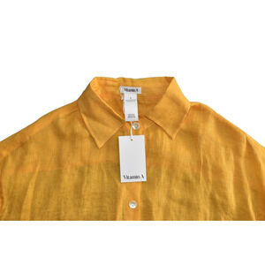 A5 NWT VITAMIN A Yellow Linen Button Front Playa Boyfriend Shirt Top Size S $148