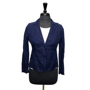 A5 New EILEEN FISHER Irish Linen Dark Blue 2 Button Ivavy Jacket Sz PP Petite
