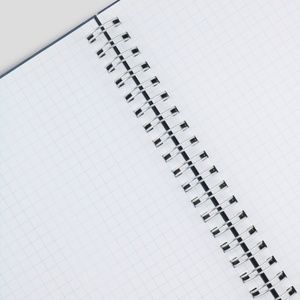 MILIKO A5 SIZE KRAFT PAPER HARDCOVER SQUARE GRID SPIRAL 4 NOTEBOOKS (SILVER BINDING RINGS, BLUE):