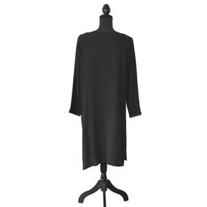 AUTHENTIC EILEEN FISHER Black Stretch Long Slit Sides Long Sleeve Petite Dress