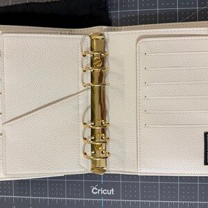 A6 binder in the color Cream. New binder. The paper around rings was removed but it has not been used.