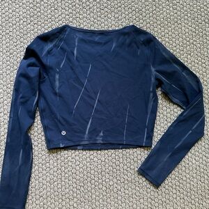 Lululemon Wunder Train Cropped Long Sleeve Shirt Sun Bleached Wash True Navy 6