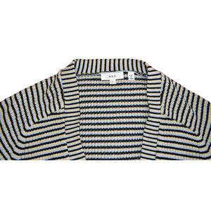 AUTHENTIC A.L.C. Blue Black Tan Cotton Blend Stripe Knit Long Cardigan Sweater
