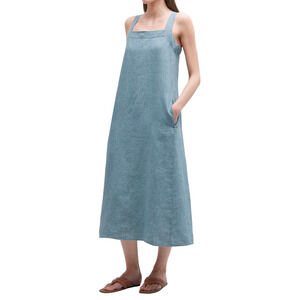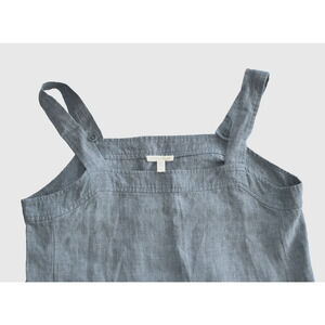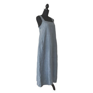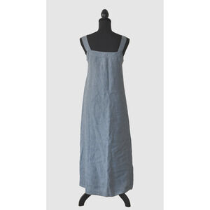 A8 Auth EILEEN FISHER Blue Organic Linen Square Neck Midi Dress Size S $248