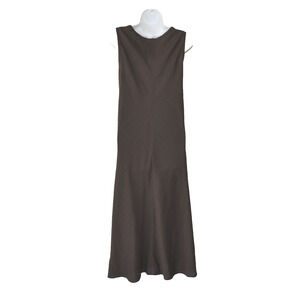 AUTHENTIC EILEEN FISHER Brown Textured Linen Blend A-Line Maxi Dress