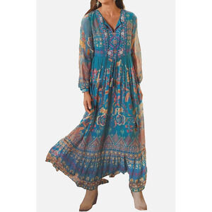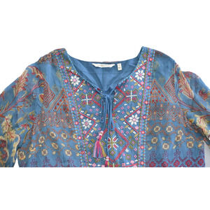 A8 NEW SOFT SURROUNDINGS Embroidered Tasseled Ties Mirapani Dress Size L $170