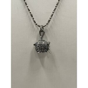 AA 925 Sterling Silver Scroll Prayer Box Locket Pendant Ball Link Chain Necklace