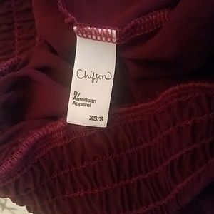 Chiffon skirt with stretchy waist. Red wine color. Perfect condition. Stops at mid thigh.