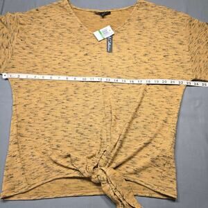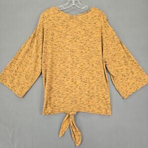 NEW A+A Collection Women's Shirt Size L Brown Stone Black Subtle Stripe Heather 4% Stretch Preppy Knit 3/4 Sleeves Tie Waist V-Neck Lightweight Top