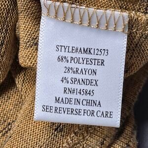 A+A Collection Brown Black Shirt NEW Stretch Knit 3/4 Sleeves V-Neck Women L Top