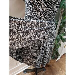 This AA Studio AA dress is a stylish addition to your wardrobe. The black and white geometric pattern adds a colorful touch to the knee-length dress. The dress features a V-neckline and short sleeves, making it suitable for both casual and party/cocktail occasions. The pullover closure and lightweight fabric make it easy to wear and perfect for all seasons.