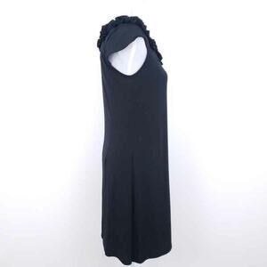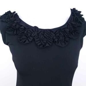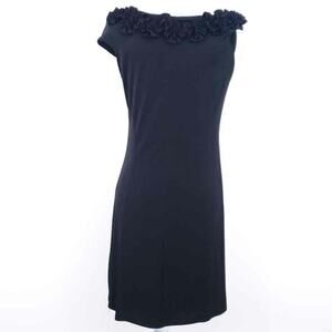 AA Studio Sheath Dress Black, Sleeveless, Stretchy Career Wear Work, Size 6 Women. Small cap sleeve. Rosettes around neckline. This black dress looks elegant but is super comfortable with lots of stretch!