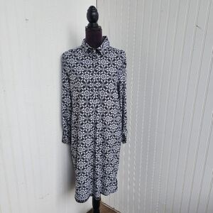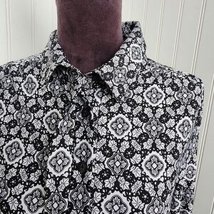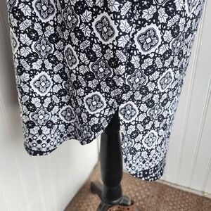 AA Studio Women Black White Abstract Print 1/4 Button Front Dress Stretch Sz 6