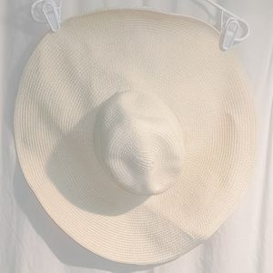 Original American Apparel California floppy hat. Made in USA. Off white or natural light cream color woven paper hat. Surprisingly durable, but don't get wet! May have some slight variations as it's handmade of paper. One size fits most. Stock image is representative.