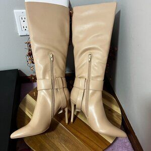 AAJ by Aminah Womens AYIDA Pointed Toe-Buckled Tall Boots Sz 6.5M in Tan