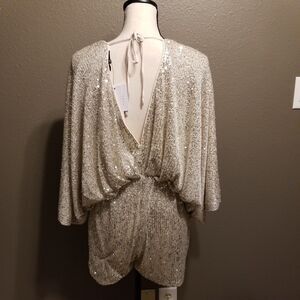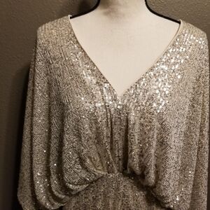 AAKAA Large Romper Gold Sequin Kimono Sleeves Deep V Holiday Sparkle Clubbing