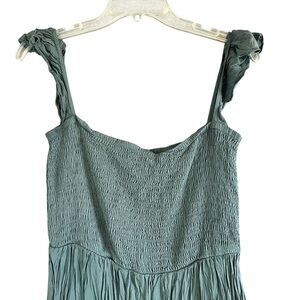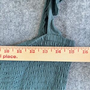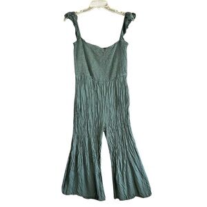 AAKAA Smocked Jumpsuit | Teal Rayon Crinkle Wide Leg Cropped Culotte L Boho Soft Girl
