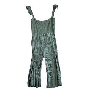 AAKAA Rayon Wide Leg Cropped Jumpsuit Smocked Top Culotte Size Large