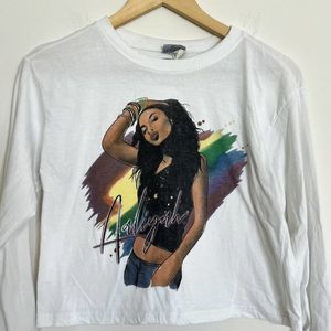 AALIYAH Shirt Womens Medium White Long Sleeve Crop Top Pullover Hip Hop Concert