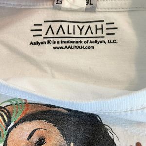 AALIYAH Shirt Womens Medium White Long Sleeve Crop Top Pullover Hip Hop Concert.