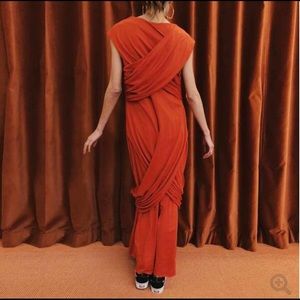 Incredible gown with ruching and gathering details in classic jersey cotton for a study in contrasts.
