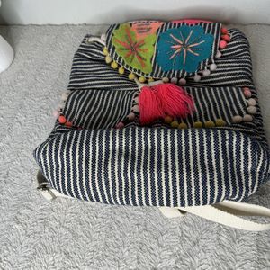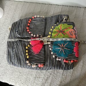 A&B America And Beyond Embroidered Floral Backpack Pom Poms Tassels Neon *Flaw
