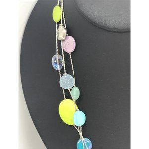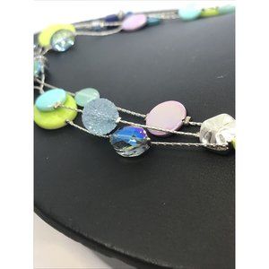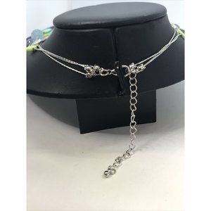 AB CRYSTALS GREEN PURPLE BLUE 18" Chain Bead Necklace Silver Tone