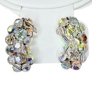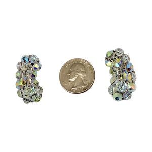 Vintage AB Crystal Climber Earrings 1.25" Silver Clip on Formal Wedding Jewelry