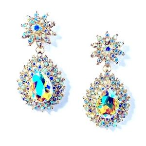 AB Crystal Drop Earrings Formal Bridal Prom Pageant