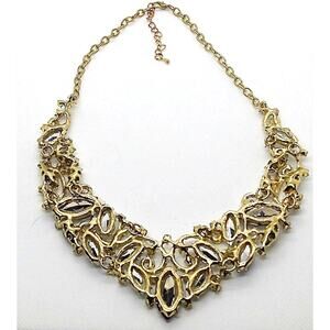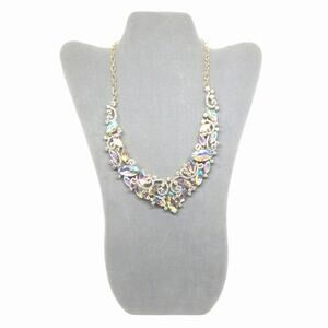 AB Crystal/Rhinestone Statement Necklace Gold Tone