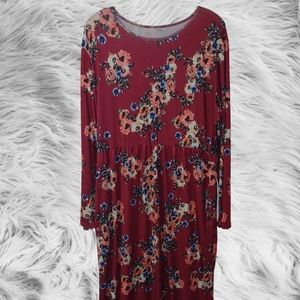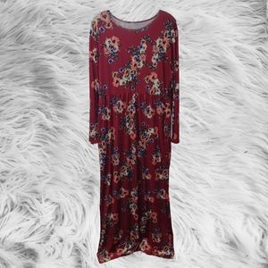 Floral print maxi dress size 2x burgundy roses luxury soft
