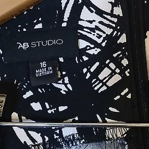 AB STUDIO DRESS SIZE 16 BLACK/ CREAM FUNCTIONAL ZIPPER IN BACK 97% POLYESTER 3% SPANDEX USED GREAT CONDITION