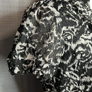 AB STUDIO SMALL BLACK AND WHITE LACE RUFFLE BLOUSE
