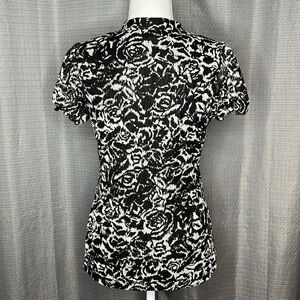 AB STUDIO SMALL BLACK AND WHITE LACE RUFFLE BLOUSE