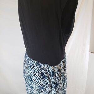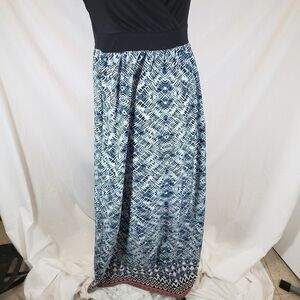 AB STUDIO Womens Black Blue White Aztec Print Maxi Dress Cross Over Neck Sz M. In Good Condition