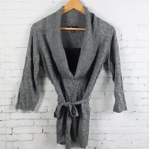HEATHER BLACK 1/2 SLEEVE COWL NECK SWEATER WITH TIE DETAIL LACE CLEAVAGE COVER SIZE LARGE BY AB STUDIO PRE OWNED NO FLAWS